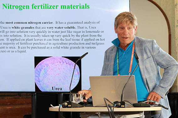 Die Vorträge von Kevin Cavanaugh (CEO, Floratine Group, Inc.) und Dr. Thomas Nikolai (auch bekannt als „Mr. Greenspeed“, Michigan State University) lieferten spannende Impulse und sorgten für angeregte Gespräche während der Pausen. Cavanaugh gab in seinem Vortrag „Tatort Boden – Was uns der Boden verrät“ tiefere Einblicke in die Bodenanalyse und deren Bedeutung für nachhaltiges Greenkeeping. Dr. Nikolai präsentierte unter dem Titel „Science on the Green“ neueste wissenschaftliche Erkenntnisse zur Rasenpflege und -optimierung. Ergänzt wurde das Programm durch Thomas Schumann (General Manager, Golfpark Schloss Wilkendorf), der in seinem Beitrag „Green & Lead – Wenn Management und Greenkeeping zusammenspielen“ die Bedeutung einer engen Zusammenarbeit zwischen Führungsebene und Greenkeeping-Team betonte. Besonders positiv wurde die offene und kollegiale Atmosphäre hervorgehoben – ein echtes Highlight für alle Beteiligten.