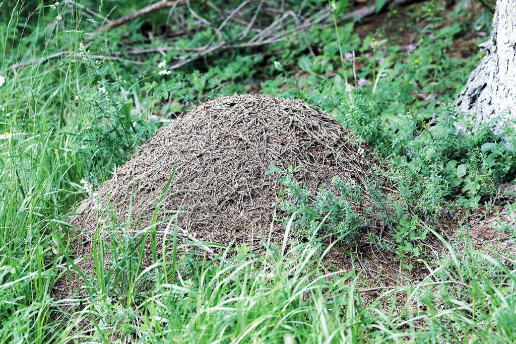 Eine im Ökosystem besonders bedeutende und vielseitige Funktion erfüllen die Ameisen (Formicidae), eine Insektenfamilie innerhalb der Ordnung der Hautflügler (Hymenoptera). Ameisen gehören zu den staatenbildenden Insekten und leben in Kolonien aus einer oder wenigen reproduzierenden Weibchen (Königinnen) und meist vielen, je nach Art, wenigen Dutzend bis Millionen (meist) nicht fortpflanzungsfähigen Arbeiterinnen, ebenfalls weiblichen Geschlechts. Die einzige Aufgabe der Männchen bildet die Befruchtung der Königin. Männchen entstehen aus unbefruchteten Eiern und sind haploid, besitzen also nur einen Chromosomensatz. Das Zusammenleben in einem Ameisenstaat ist energieaufwändig. Ameisen bauen hohe Biomassen auf, investieren viel in die soziale Lebensweise und verbrauchen entsprechend beachtliche Nahrungsmengen. Ihr Einfluss im Ökosystem und Position im Nahrungsnetz ist entsprechend hoch. Ameisen akkumulieren Nährstoffe in ihren Nestern, regulieren substantiell die Populationen andere Insekten, die ihnen als Proteinquelle dienen, sie verbreiten Samen, züchten und melken Blattläuse (dieser sogenannte Honigtau bildet die wesentliche Kohlenhydratquelle für viele Arten – wir schmieren ihn als Waldhonig auch gerne aufs Butterbrot). Nicht zuletzt beherbergen Ameisennester einen Mikrokosmos von hoch spezialisierten Wirbellosen, von der Ameisenbläulingsraupe bis zur Ameisengrille Aufgrund ihrer hohen Biomassen stellen sie auch eine wichtige Nahrungsgrundlage für viele Tierarten dar z.B. Raufußhühner, Spechte und sogar Großwild wie dem Braunbären.